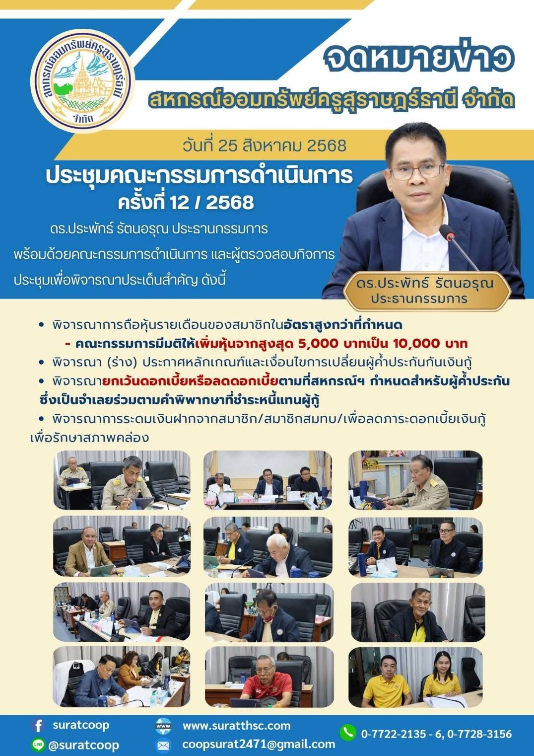 วันที่เรียกเก็บใบเสร็จประจำเดือน ตุลาคม 2568 => บำนาญ 24 ตุลาคม สมาชิกปกติ 28 ตุลาคม เอกชน/อื่นๆ 30 ตุลาคม