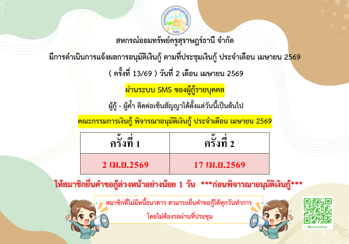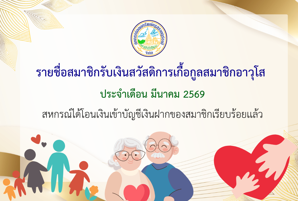 วันที่เรียกเก็บใบเสร็จประจำเดือน เมษายน 2569 => บำนาญ 23 เมษายน สมาชิกปกติ 27 เมษายน เอกชน/อื่นๆ 30 เมษายน