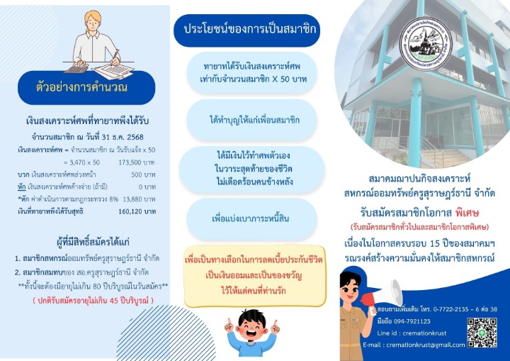 ประชาสัมพันธ์ สมาคมฌาปนกิจสงเคราะห์ รับสมัครสมาชิกโอกาสพิเศษ เนื่องในโอกาสครบรอบ 15 ปี ของสมาคมฯ