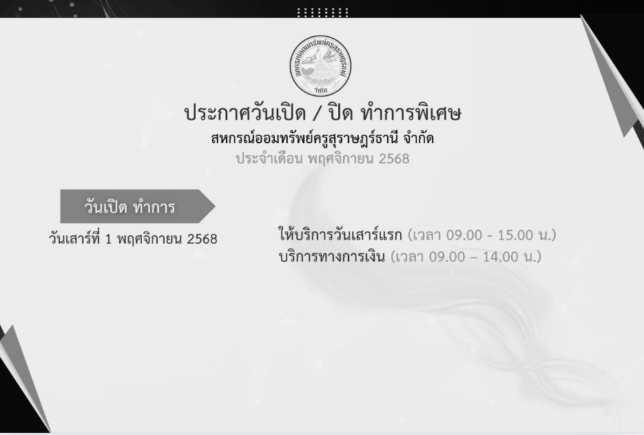 วันที่เรียกเก็บใบเสร็จประจำเดือน ตุลาคม 2568 => บำนาญ 24 ตุลาคม สมาชิกปกติ 28 ตุลาคม เอกชน/อื่นๆ 30 ตุลาคม