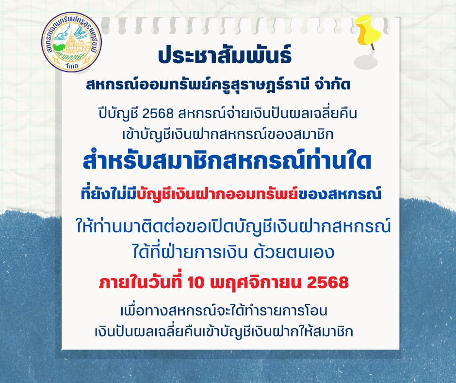 วันที่เรียกเก็บใบเสร็จประจำเดือน ตุลาคม 2568 => บำนาญ 24 ตุลาคม สมาชิกปกติ 28 ตุลาคม เอกชน/อื่นๆ 30 ตุลาคม