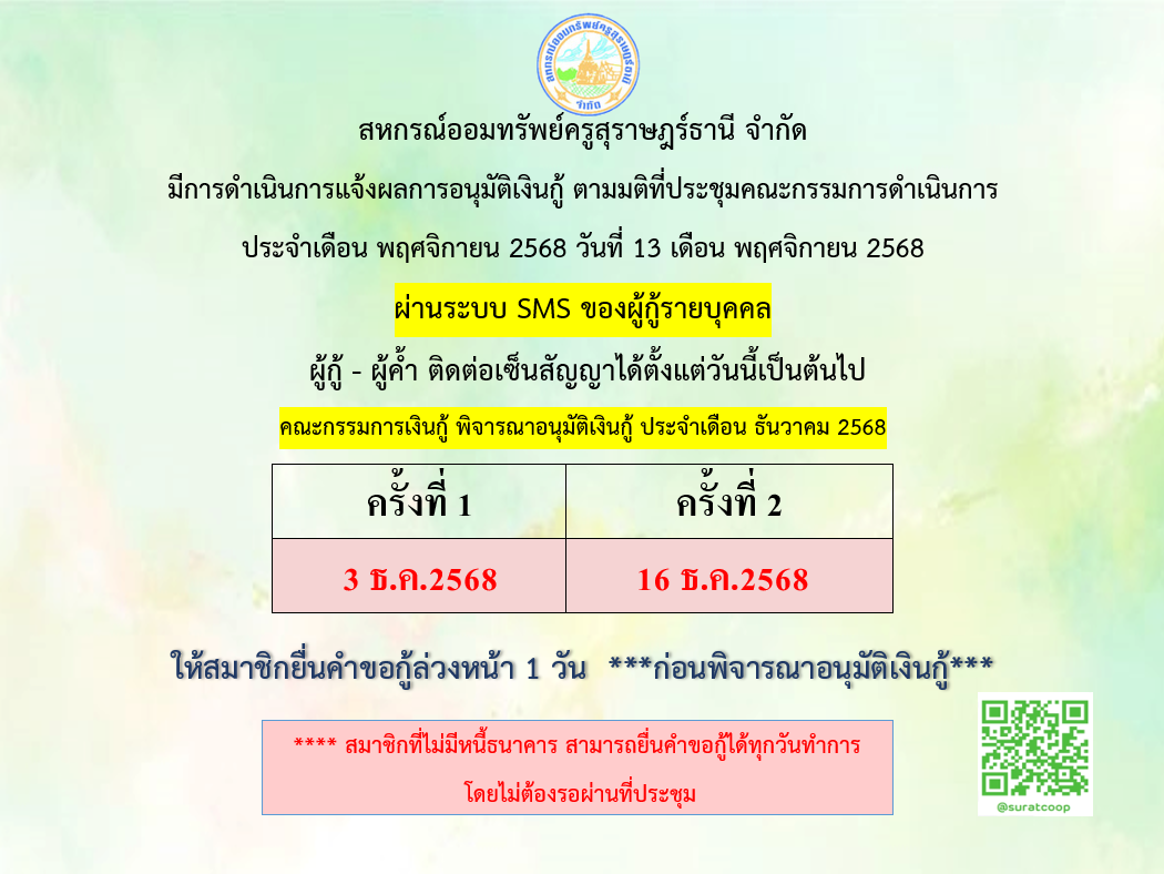 ประชาสัมพันธ์ การจ่ายคืนเงินฝากสวัสดิการเพื่อการช่วยเหลือครอบครัวสมาชิก (ส.ค.ส.)
