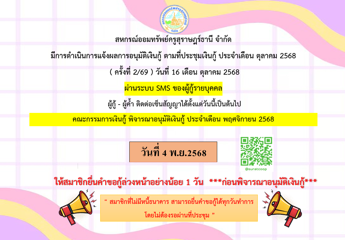 วันที่เรียกเก็บใบเสร็จประจำเดือน ตุลาคม 2568 => บำนาญ 24 ตุลาคม สมาชิกปกติ 28 ตุลาคม เอกชน/อื่นๆ 30 ตุลาคม