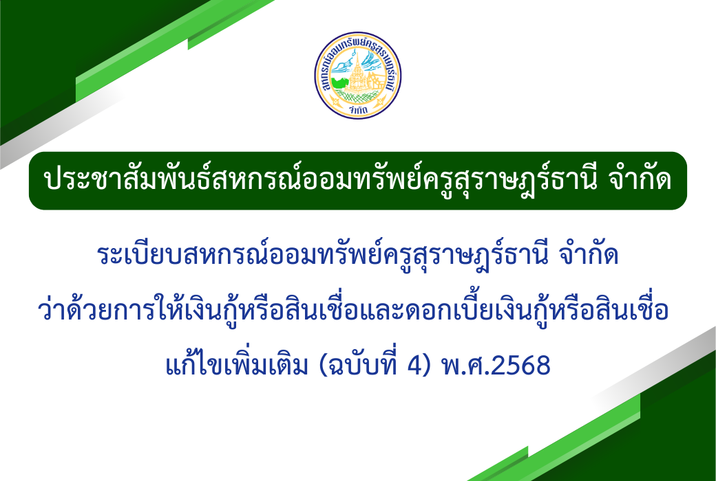 ระเบียบฯ ว่าด้วยการให้เงินกู้หรือสินเชื่อและดอกเบี้ยเงินกู้หรือสินเชื่อ แก้ไขเพิ่มเติม (ฉบับที่ 2) พ.ศ. 2568